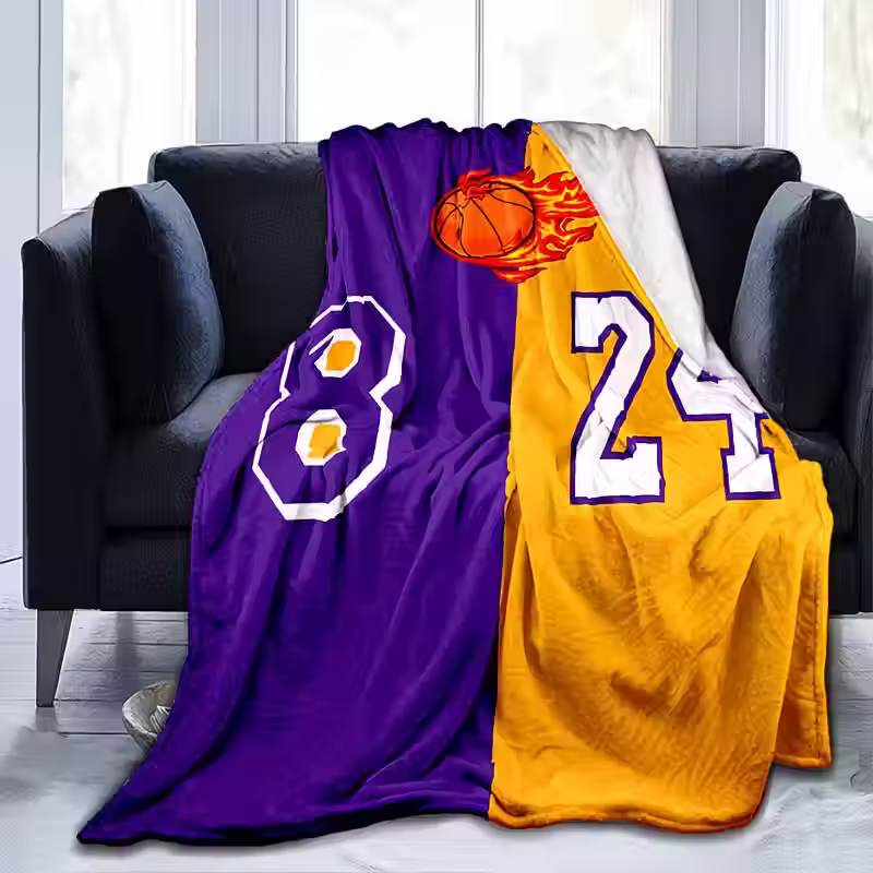 Kobe Blanket: Number 24 and Number 8 Laker purple and gold blanket